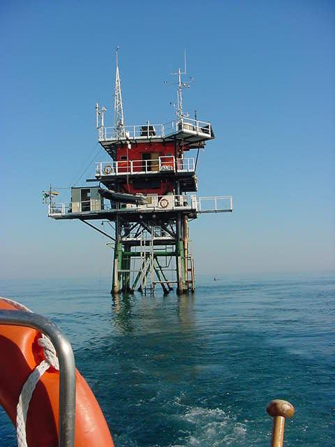 The Aqua Alta Research Platform is operated by the Oceanographic Division of the Istituto per lo Studio della Dinamica delle Grandi Masse (ISDGM), one of several organizations that make up the Italian Consiglio Nazionale delle Ricerche (CNR). It's an oil drilling platform, converted to oceanographic research. It has a full set of weather instruments, a CIMEL solar radiometer, radiometers to measure sea-surface radiance, and instruments that measure water temperature & salinity as a function of depth. They also take water samples from various depths for water quality analysis. The platform is located about 12 nautical miles east of Venice, in the Adriatic Sea. Water depth is only about 34 meters. Data from the CIMEL are available over the AERONET (AErosol RObotic NETwork). Just select "DATA" at the top of the page, "Level 1.5 Real Time Cloud Screened Data" from the page that comes up, and "Venise" from the table on that page.