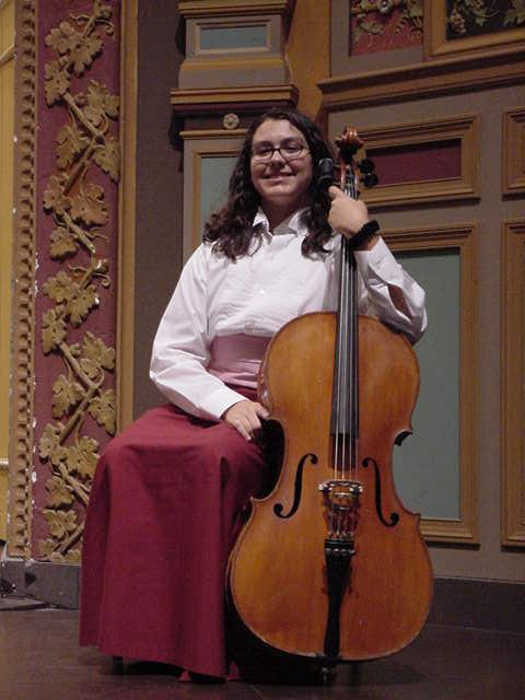 Leah with her Cello, in the Pasadena Civic Auditorium