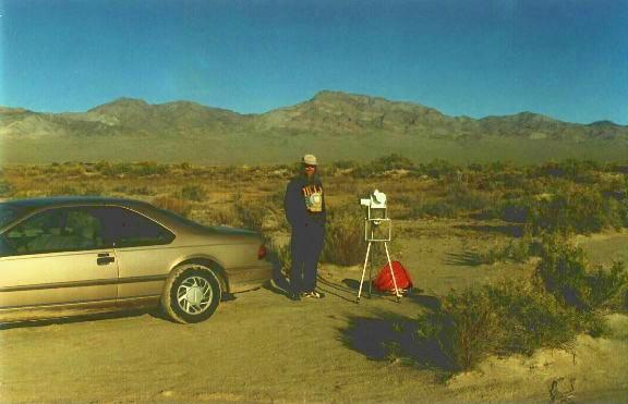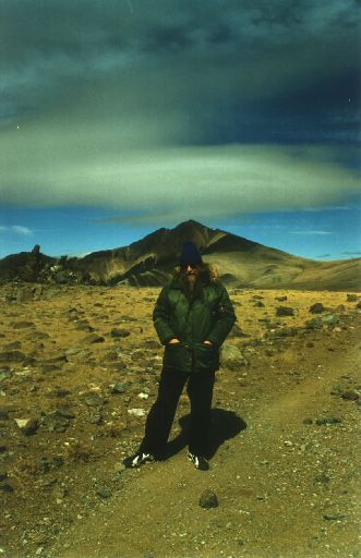 The Barcroft Laboratory is the 2nd highest of the facilities available at the White Mountain Research Station, at about 12,470 feet up in the White Mountains, on the flank of Mt. Barcroft. The only higher facility is the White Mountain summit facility. In the picture I have hiked up to the 13,000 foot level, behind the laboratory. It was cold & windy, but fairly dry, and climbing 600 feet at that altitude is a chore for me. The picture was taken by Gordon Hoover, and shows the peak of White Mountain in the background, directly over my head.